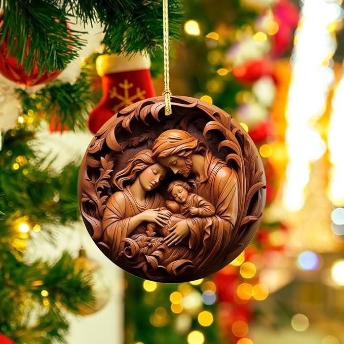Christianartworkshop Retro Style Nativity Christmas Hanging Ornaments A