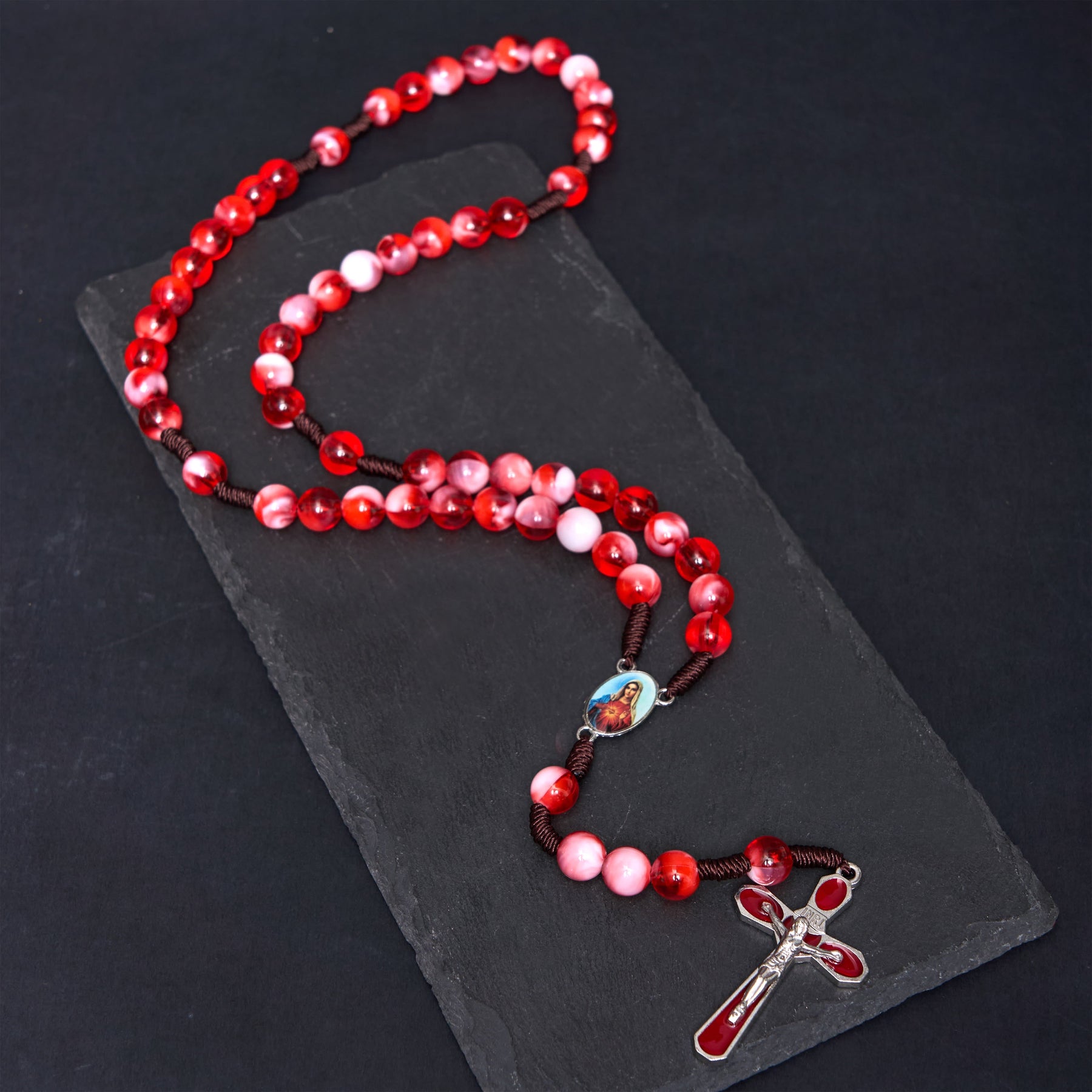 Let the cool touch of red acrylic guide you through each prayer, helping you find tranquility and focus. This rosary is more than just a devotional tool—it's a comforting presence that supports your journey towards inner peace and divine connection.