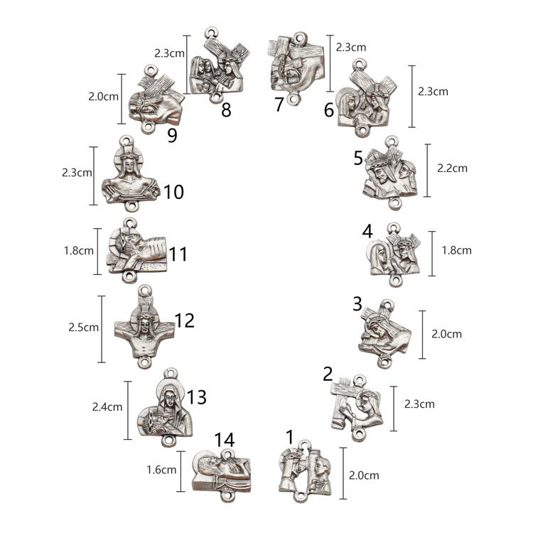Stations of The Cross Medals: Adorning the rosary are meticulously detailed medals representing the 14 Stations of The Cross. Each station invites you to reflect deeply on Christ’s journey, fostering a meaningful and immersive prayer experience.