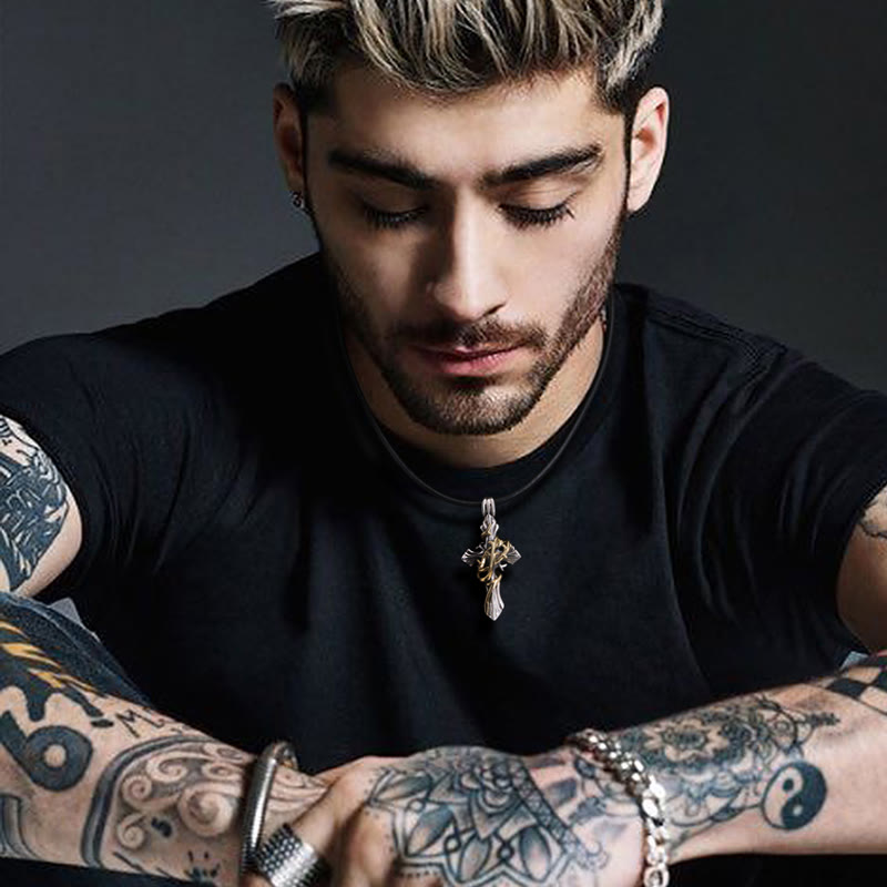 These two cross necklaces exude a strong mysterious dark style. The cross pendant is designed with ingenuity, either decorated with gold and silver vines, or surrounded by pure silver vines. The vine lines are flexible and full of tension, wrapped around the cross, injecting it with a unique soul, as if carrying an unknown mysterious story, showing personality and unruly. -