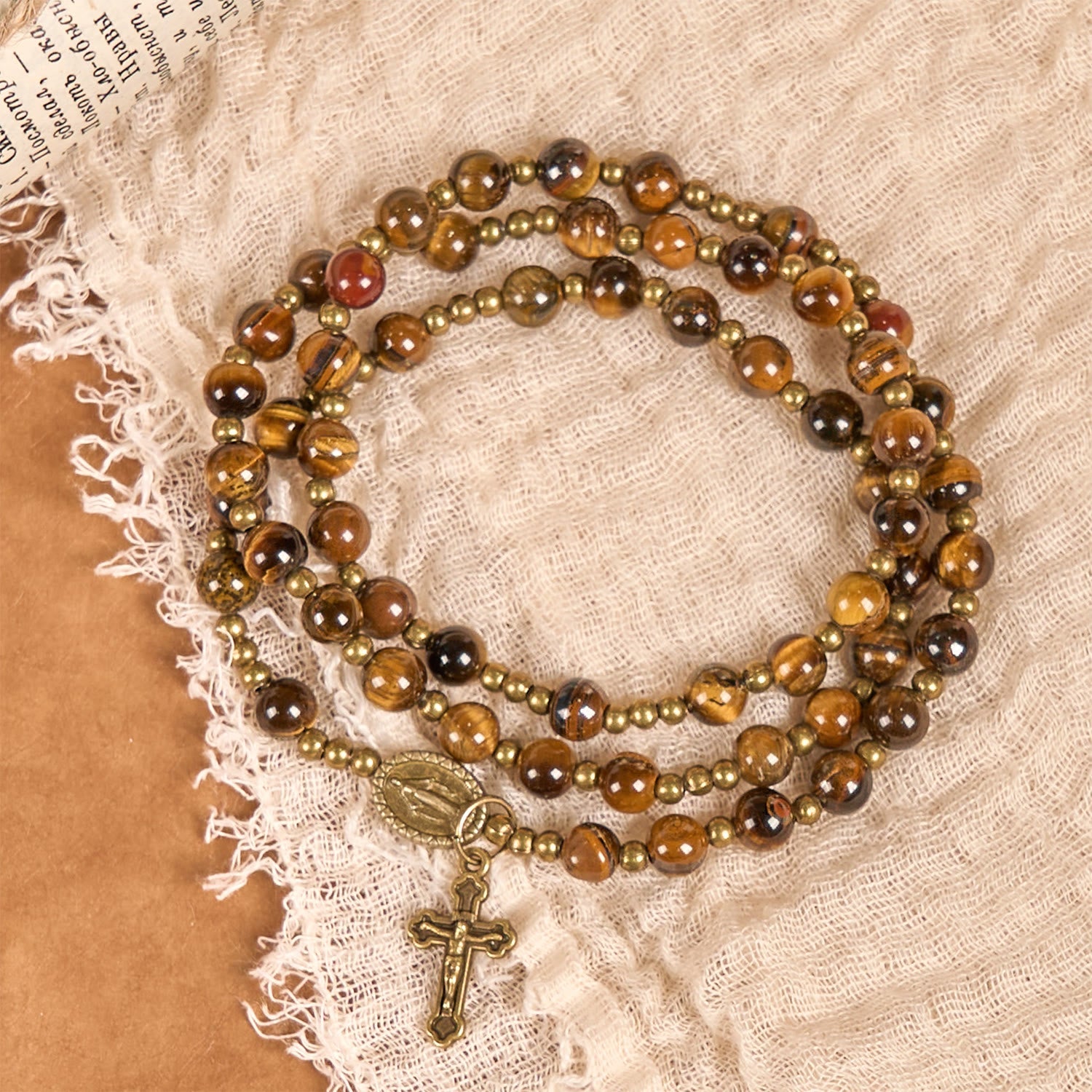Christianartworkshop Handmade Tiger's Eye Stone Elastic Rosary Bracelet: A Dual - Purpose Spiritual Gem