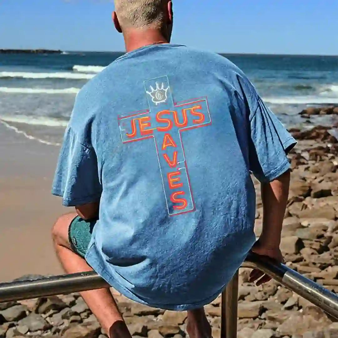 Introducing the Jesus Saves Cross Graphic T-Shirt: Introducing the "Jesus Saves Cross Graphic T-Shirt," a stylish and evocative piece that underscores your spiritual faith and devotion. Made from high-quality, comfortable, and durable fabric, this short-sleeve t-shirt is perfect for everyday wear.