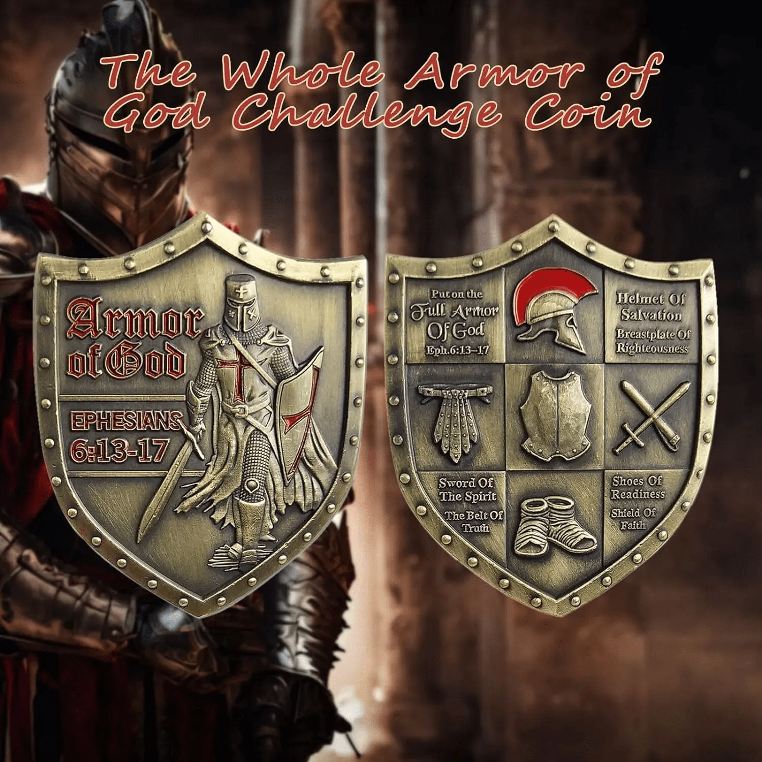 Christianartworkshop Classic Style Armor of God Shield Challenge Coin with Ephesians 6:13–17