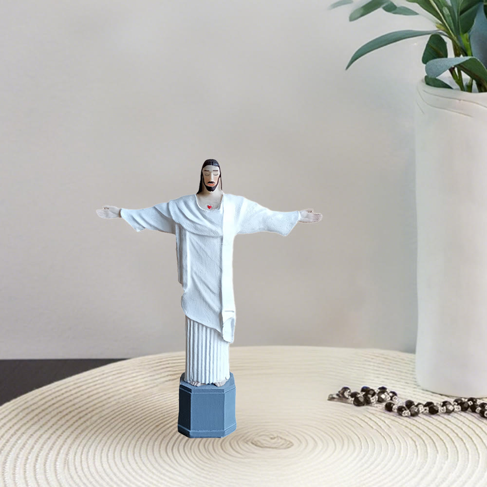 The pose recalls the world-famous Christ the Redeemer statue, radiating peace and strength. Whether at work, in study, or at home, His open arms assure you that you are always welcomed and never alone.