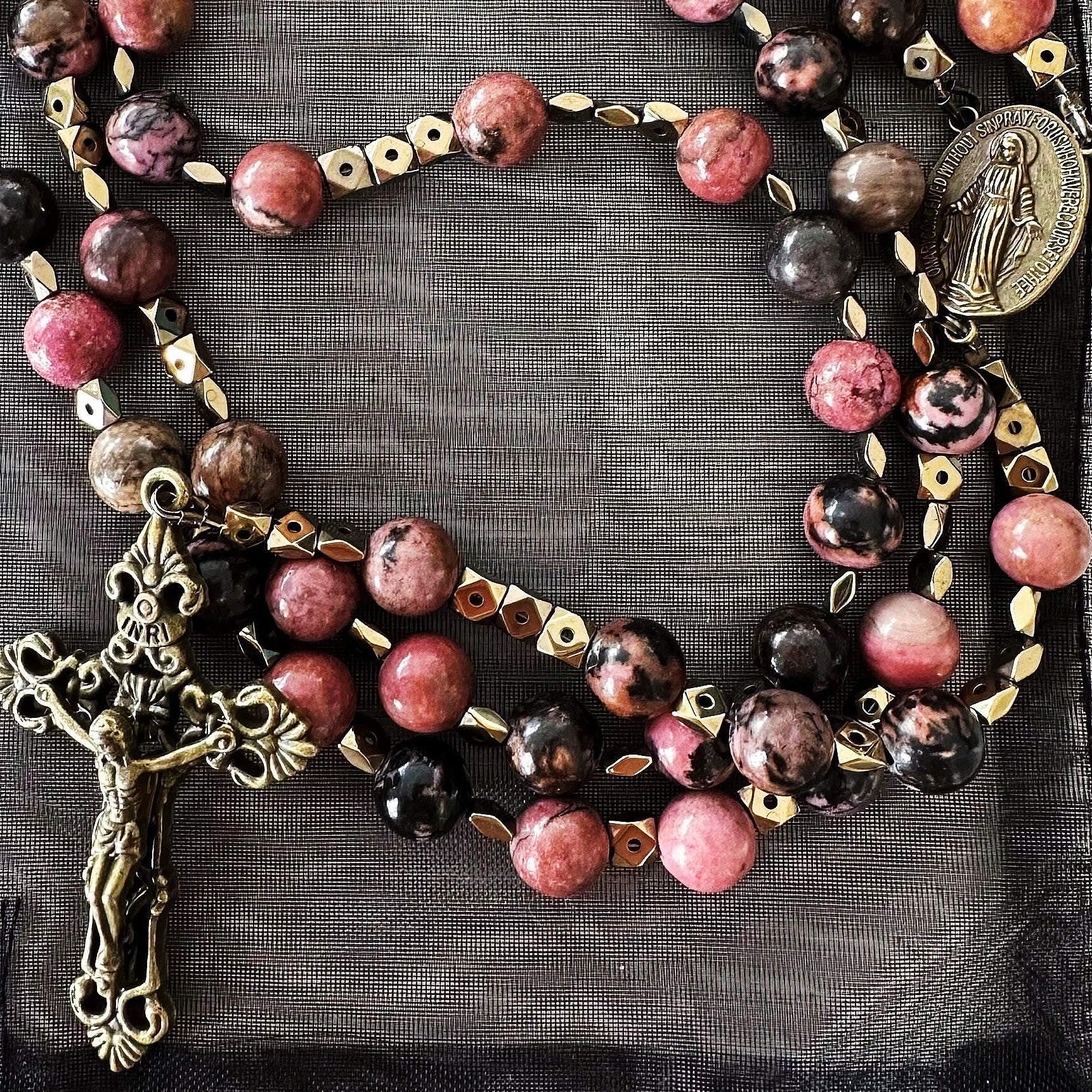 Each bead in this rosary is meticulously handcrafted, featuring rich, earthy tones of pink and brown. The smooth texture and natural beauty of the beads provide a comforting touch as you move through your prayers. The combination of colors not only enhances its visual appeal but also adds to its symbolic depth. -