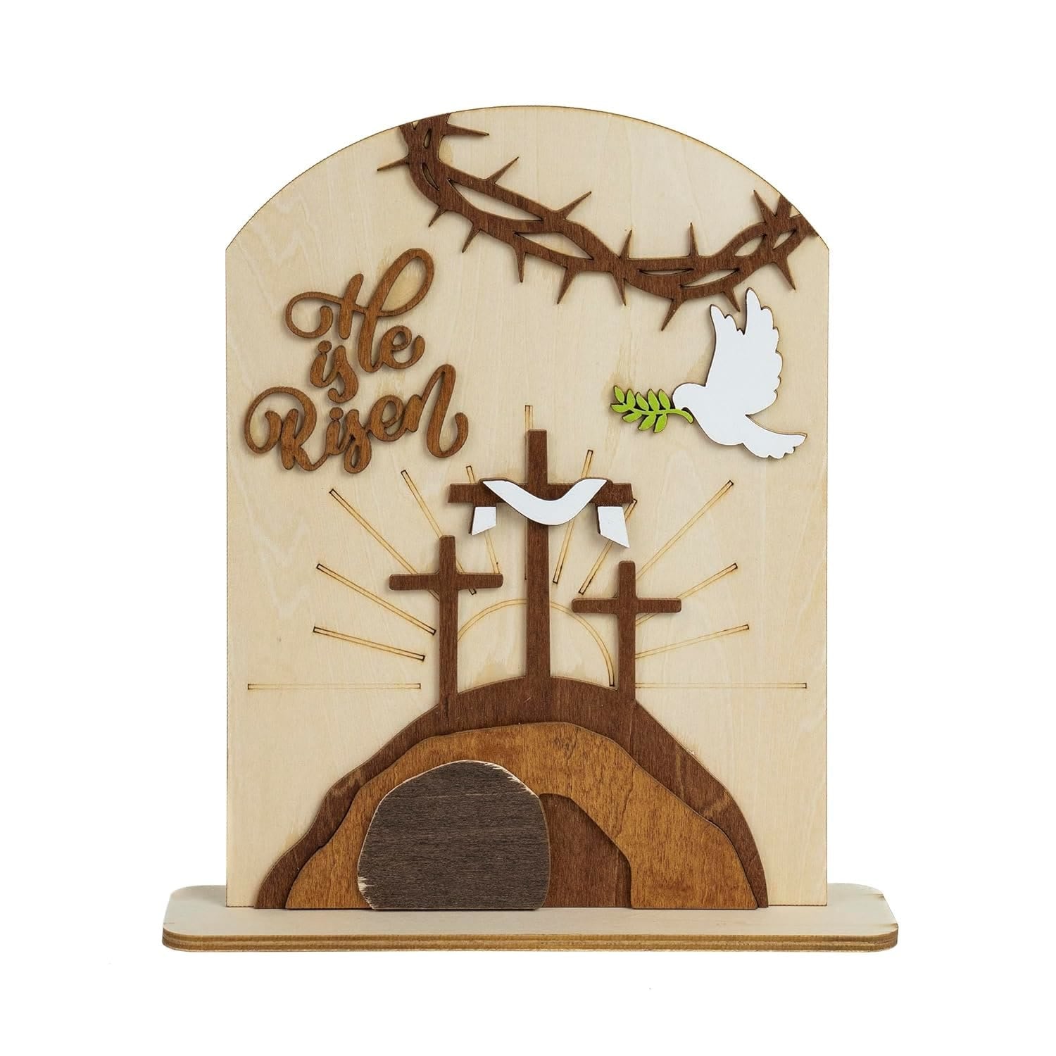 "Risen Hope" Easter Icon Set: Decorative Wooden Display with Cross and Tomb Designs